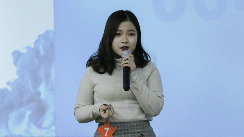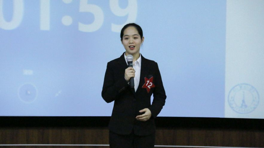 各位参赛选手在决赛前一天抽签决定各自的上场顺序与演讲主题,进行一段一分半至两分钟的演讲。演讲主题中既有对社会热点问题的关注,如“互联网是社会关系的创造者还是破坏者?”,又有深刻的哲学思考,如“美是否是艺术创作的真正目的?”台上的选手们自信大方,用深厚的法语功底表达自我,绽放思想之花。