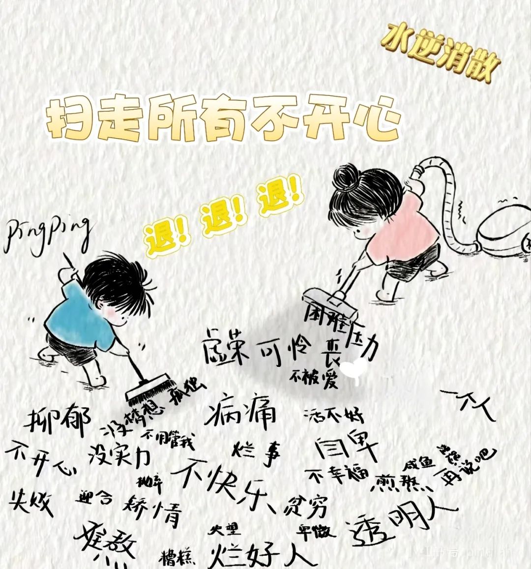 情绪发泄·困扰消失板:用深色马克笔写下消极情绪或近期困扰,扫走所有的不开心!