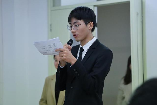 大三的何沂轩同学先带观众梳理了演讲题目的前提: 无论是观点还是价值都是带有主观色彩的名词。尽管他尊重个体表达的自由,但不是每一个观点都有价值。在他看来,有价值的观点需满足两大特征:基于现实研究而非捏造;内容多样而非重复。何沂轩同学别出心裁的角度和逻辑缜密的论证为他迎来了观众的热烈掌声。