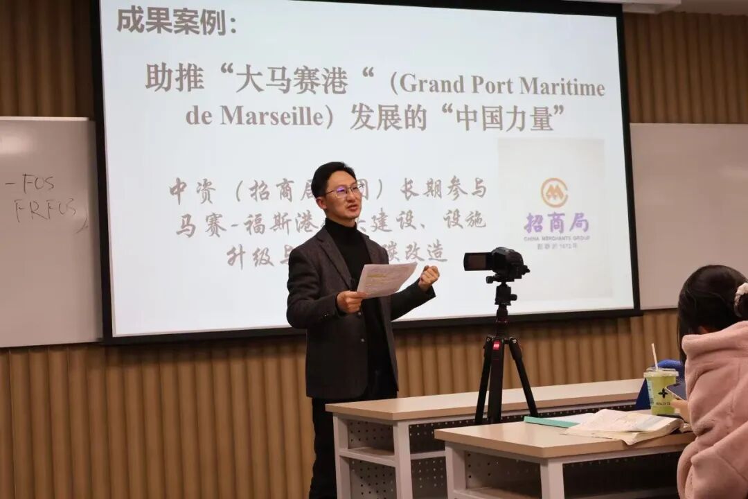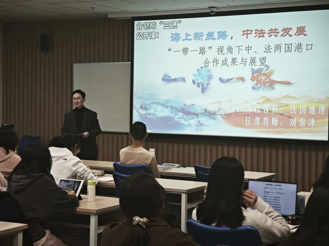 本次公开课以“‘一带一路’视角下中、法两国港口合作成果与展望”为主题,结合专业教学内容,引入中、法两国在港口建设及远洋航运领域合作成果,从而使学生全面、深入地理解“一带一路”倡议核心原则。