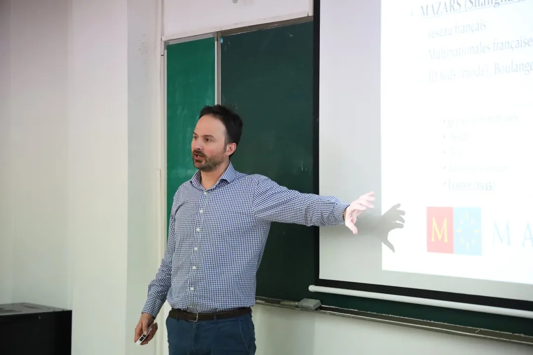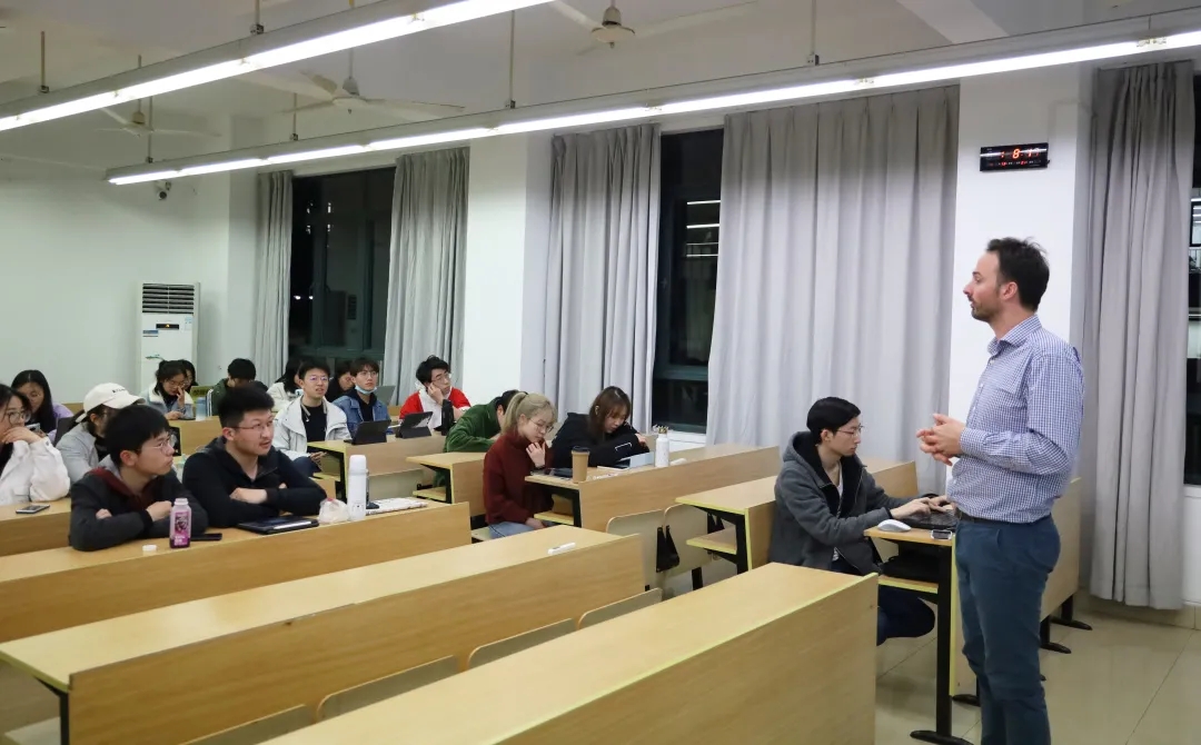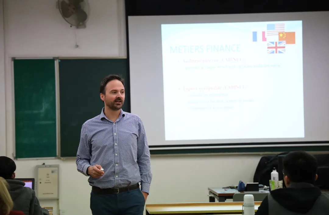 在提问互动环节,有同学表示有意进⼊⾦融业,但担⼼⾃身⾜,缺乏相关专业背景。对此,Guillaume Duquenne先⽣认为,从事⾦融业确实需要⼀定的专业背景,但不必过分担⼼,⾦融与化学等学科不同,对数学能⼒并没有过⾼要求,需要的更多是对数字的敏感。此外,优秀的外语⽔平也是很有竞争⼒的加分项。同学们不⽤过于焦虑,应当以积极乐观的⼼态⾯对未来的学习和⼯作。