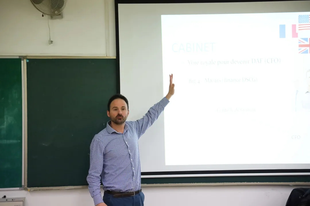 接下来,Guillaume Duquenne先⽣进⼀步介绍了四⼤跨国会计师事务所——普华永道(PWC)、德勤(DTT)、毕⻢威(KPMG)、安永(EY)——的基本情况。此外Guillaume Duquenne先⽣还指出除了这四⼤事务所之外,还有“第五⼤”事务所,即法国的玛泽事务所(MAZARS),Guillaume Duquenne先⽣以玛泽事务所为例介绍了想要成为会计师需要经历的⼏个阶段。