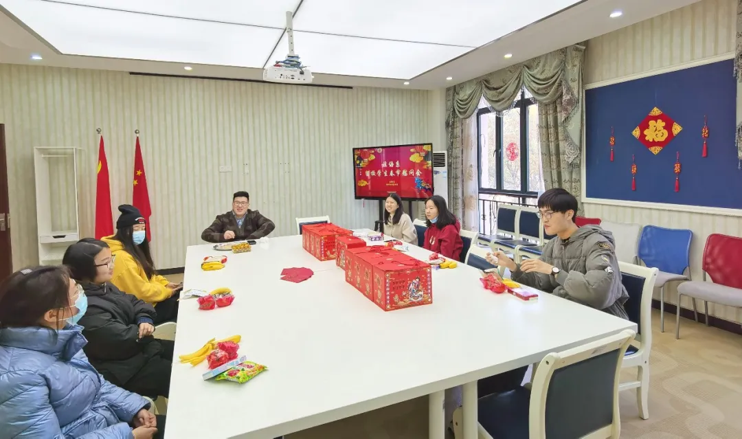 会上同学们畅所欲言,与老师们热情交谈,现场气氛暖意融融。总支副书记陈雪莲老师叮嘱大家在假期内做好个人防护,遇到任何困难及时向老师求助,系里将积极解决大家留校期间的各项困难。会后,与会老师向留校学生发放新春慰问金和年货礼包,并送上美好的新春祝福。