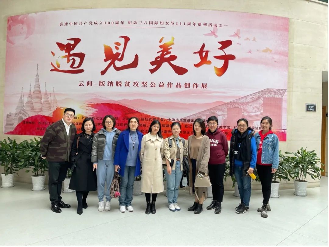 活动第一站为位于泰晤士小镇的松江美术馆,各位老师兴致盎然地参观了“遇见美好”——庆祝中国共产党成立100周年云间•版纳脱贫攻坚公益作品创作展。