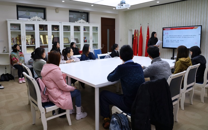 2021年3月16日,法语系分党校在242会议室召开第四期入党积极分子培训班优秀党员分享会,17级邱喆倩同学应邀做优秀党员分享。法语系党支部副书记陈雪莲和法语系辅导员颜姝婷出席本次分享会。