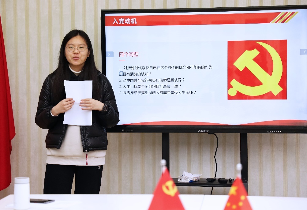 分享会上,邱喆倩同学讲述了自己从“因家庭氛围想入党”到“我认同并有志于党”的思想转变过程,提醒同学们要通过思考不断端正自己的入党动机;她分享了作为预备党员的学习经验和心得:学习党史材料,巩固理论知识;参与实践调研,在实践中深入对党的理解,努力做到学、思、践、悟。