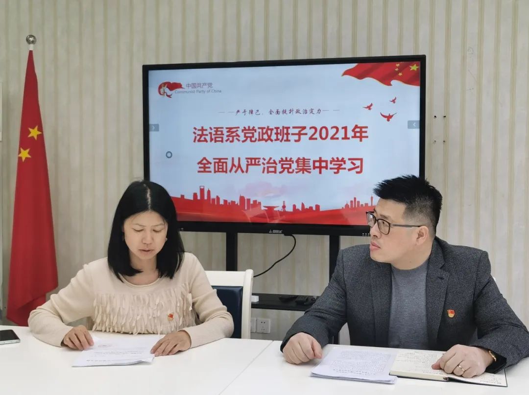 为深入贯彻上海外国语大学2021年全面从严治党工作要点,扎实开展党史学习教育,4月7日下午法语系党总支在242会议室召开2021年党政班子全面从严治党工作集体研讨。