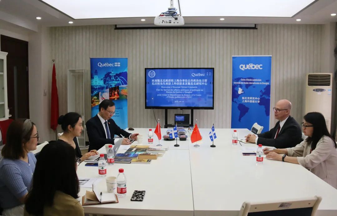 615日下午,魁北克政府驻上海办事处公共政治处主管孔以恒先生(Michel Constantin)到访上外魁北克研究中心,并为法语系师生带来一场精彩讲座。魁北克政府驻上海办事处教育文化公共事务官员赵逢春女士陪同来访。