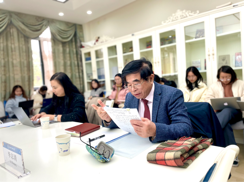 在点评阶段,李志清教授肯定了陈同学的研究选题与思路,并就扩展研究语料、挖掘人文思想起源、探索存在主义精神内核等方面作出了补充。他建议将作家及作品置于西方思想史视阈下进行研究,进一步提升研究的深度与高度。