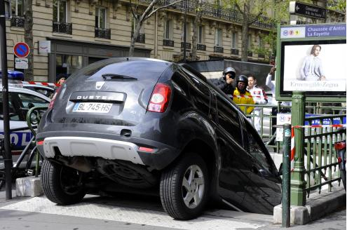Paris : voiture garée dans une bouche de métro