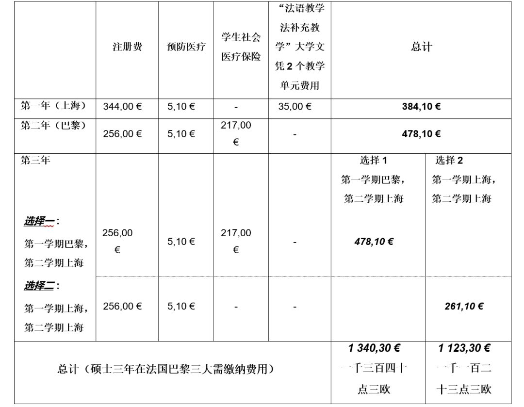 新索邦-巴黎第三大学:按新索邦-巴黎第三大学规定缴纳注册费等相关费用,预估如下: