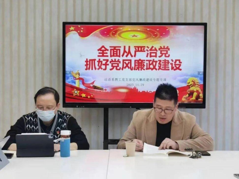 为进一步强化教师廉洁从教意识,筑牢师德师风防线,积极营造风清气正的教育教学环境,11月29日中午,法语系教工党支部组织开展党风廉政教育专题党课。