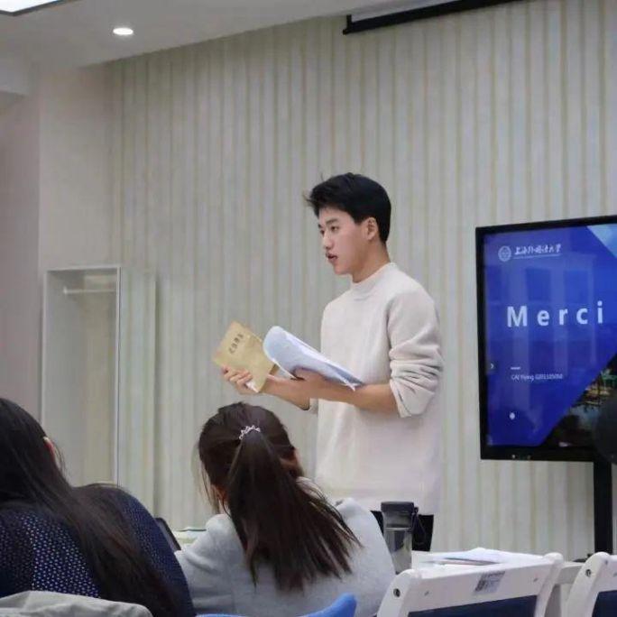 2023年11月27日(周一)下午,法语系“学术角”在松江校区顺利进行,围绕 “青年”与“学术”主题,2020级10位同学开展热烈研讨,展开了一场思想和学术的交流盛宴。法语系王圆圆、刘莹莹、陈嘉琨等三位专业教师担任专家点评,部分2021级同学到场观摩学习。