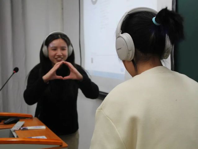 活动分为两个环节,第一个环节——“寂静中的呐喊!”。队友三人纷纷戴上降噪耳机,依次传递指示词,五支队伍依次进行比赛。