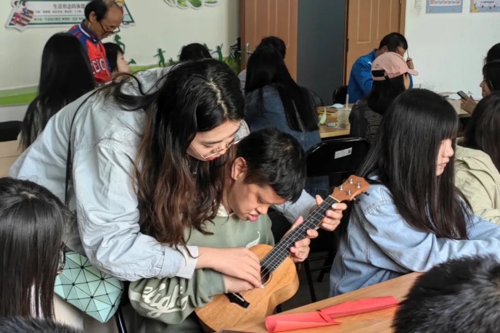 除了给予智力障碍群体物质上的关心与知识上的帮助,该团队同样关注他们的精神世界。在线下授课中,她们开展了艺术、体育类课程及多样的文体活动,如漆扇制作、音乐会等,丰富了智力障碍群体群体的生活。