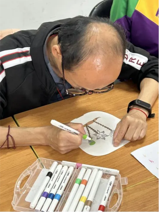 智力障碍群体进行扇子绘画