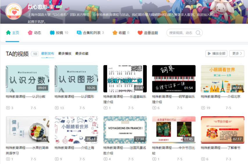 此团队所创建的哔哩哔哩账号除了发布团队自主设计的教学视频,还将分享志愿感想、志愿经历、对智力障碍相关残疾知识的科普等内容,在吸引各地残疾人之家关注的同时,为有志者提供了解渠道与加入途径。以此宣传方式,她们呼吁广大社会群体了解并关爱智力障碍群体,努力吸引来自不同专业的高校学生,发展一支独具特色的志愿者队伍。