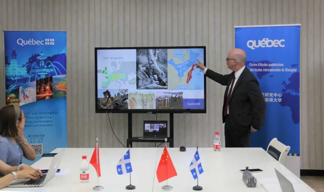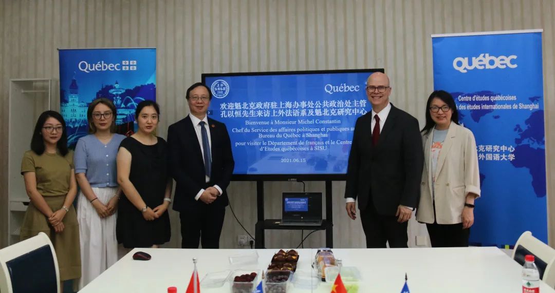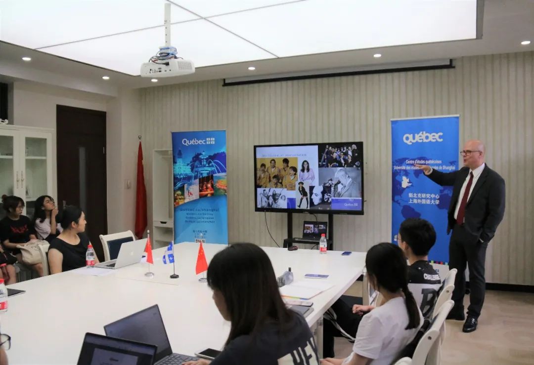 615日下午,魁北克政府驻上海办事处公共政治处主管孔以恒先生(Michel Constantin)到访上外魁北克研究中心,并为法语系师生带来一场精彩讲座。魁北克政府驻上海办事处教育文化公共事务官员赵逢春女士陪同来访。