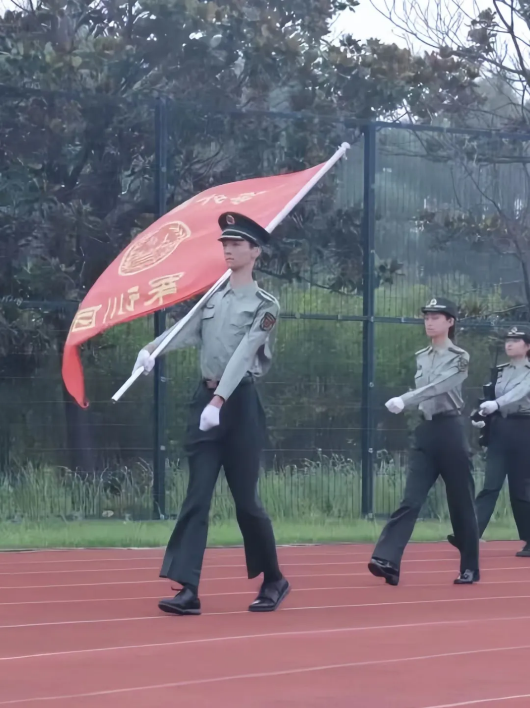 日出东方,其道大光,灿烂的曙光映照着华彩飞扬的鲜艳红旗。我系的两位同学刘煜和张梓锐以日复一日坚定努力的魄力,不言放弃咬牙坚持的决心参与国旗护卫队的高强度训练,最终呈现出整齐划一,气势雄浑的精彩队列表演。