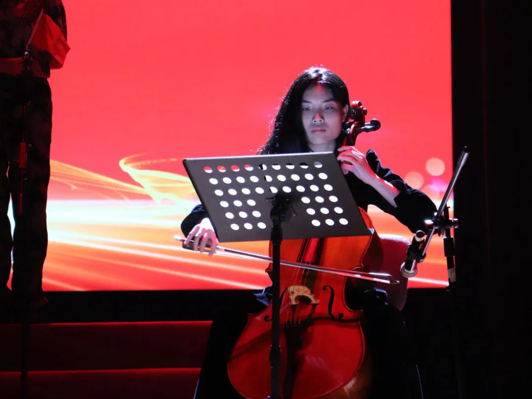 “我和我的祖国,一刻也不能分割,无论我走到哪里,都流出一首赞歌……”悠扬的合唱歌声,深情的大提琴旋律,动人的舞蹈,谱写出法语系学子对祖国的赞歌。在军歌大赛的备赛过程中,我们齐心协力,最终也获得了一等奖的好成绩。
