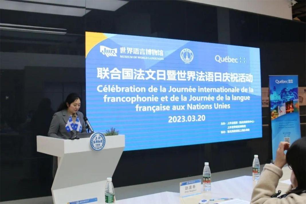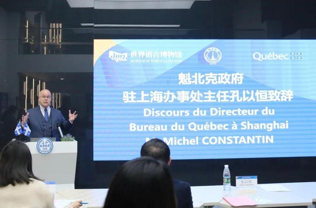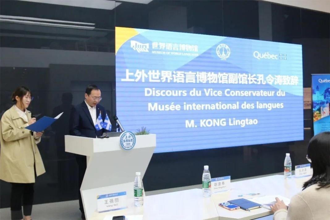 紧接着,孔以恒先生在其致辞中表示,能够出席本次庆祝活动感到非常荣幸,“联合国法文日”纪念活动不仅仅是庆祝法语,更是用法语庆祝世界语言的多样性。魁北克地区不仅以法语为身份基础,也高度重视魁北克地区原住民的语言文化遗产。最后,他对上外世界语言博物馆为保护世界语言作出的不懈努力表示感谢。