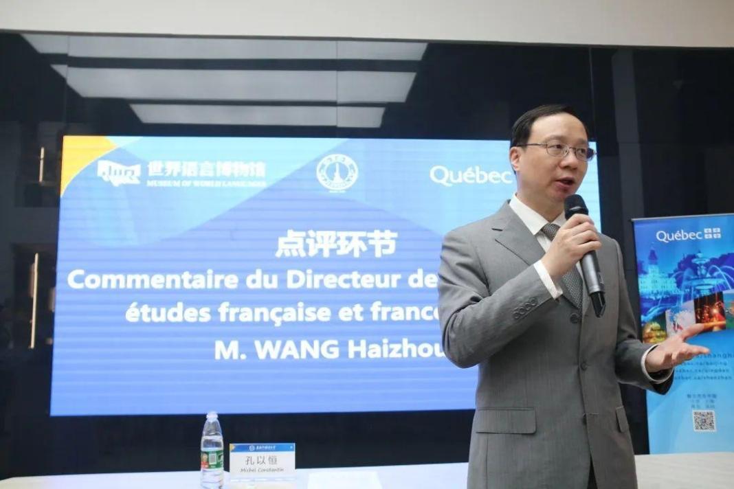 互动环节结束后,法语系主任、上外魁北克研究中心主任王海洲对本次活动进行了简要点评。他对孔以恒先生受邀来到上外开展讲座表示感谢。这场精彩的讲座表明了法语在世界上举足轻重的地位,这恰恰说明同学们选择法语作为专业或二外学习是明智之举。他鼓励在场学生充分把握本次讲座的机会,结合个人研究方向创新研究课题,不再仅仅局限于法国,而是着眼世界各个法语国家与地区。王海洲主任还指出,420日即将迎来“联合国中文日”,作为当代新青年应思考如何在尊重语言多样性的基础上,在世界范围内弘扬中文及中国文化,这也是我们的责任与义务所在。