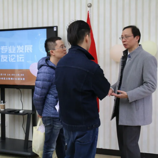 午后,法语专业发展校友论坛在松江3242会议室举行。校友和老师们驻足交谈,师生互动更是温馨融洽。吴贤良老师以执教多年的经验,为同学们答疑解惑,传授法语语法学习的经验技巧;陈雪莲老师与王海洲老师热情迎接重返母校的校友,交流彼此的近况。