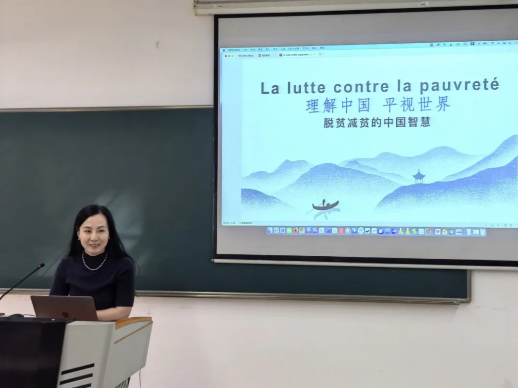 最后,王圆圆老师结合“理解当代中国”系列教材《法语演讲教程》第三单元《扶贫减贫》(La lutte contre la pauvreté)相关内容,带领同学们对重点语汇的法语表达进行研习,进一步强化了学生们对这一主题的理解和表达能力。