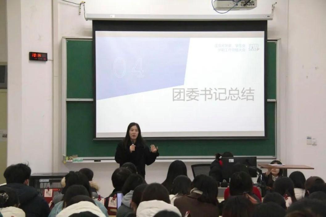 接着,胡老师也鼓励了团委、学生会的各位同学们,对新老成员在一学期工作中实现的蜕变表示肯定,鼓励大家总结经验和教训,在未来的工作中再创佳绩。